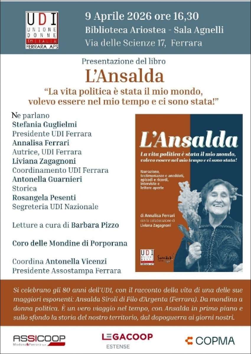 Si celebrano gli 80 anni di UDI, con il racconto della vita di una delle sue maggiori esponenti locali: Ansalda Siroli di Filo d’Argenta. Da mondina a donna politica.