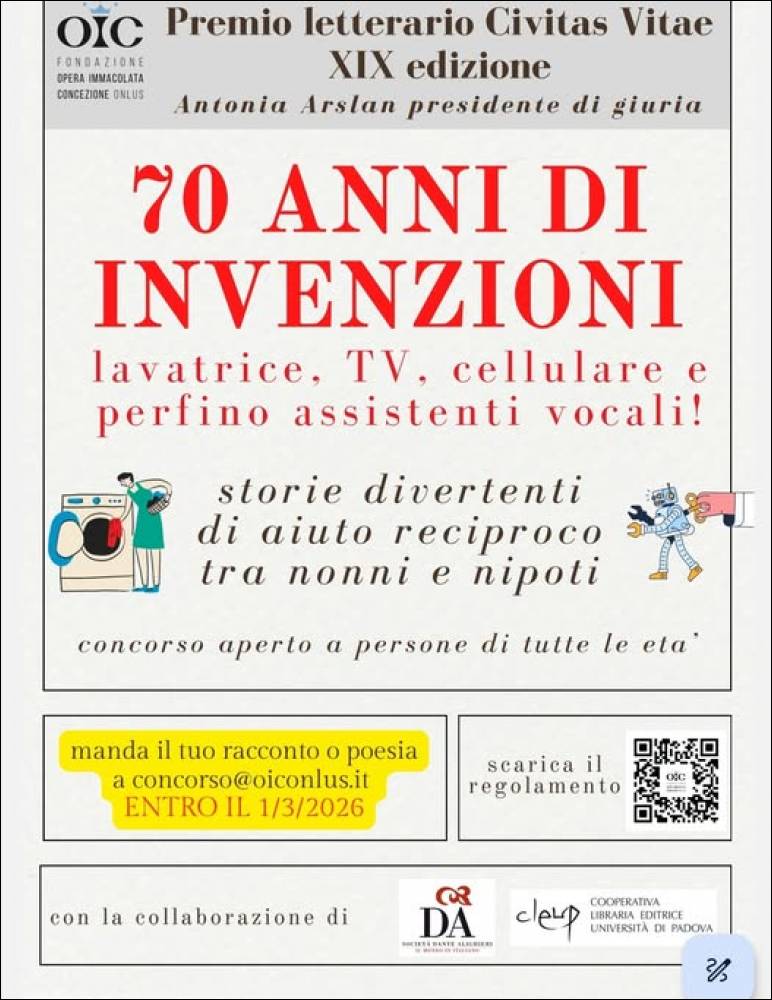 La Giuria, presieduta da Antonia Arslan, selezionerà i racconti e le poesie che saranno premiati durante una cerimonia pubblica che si svolgerà in presenza e online il 30 maggio 2026 presso l'Auditoorium 'Pontello' della Fondazione OIC.
