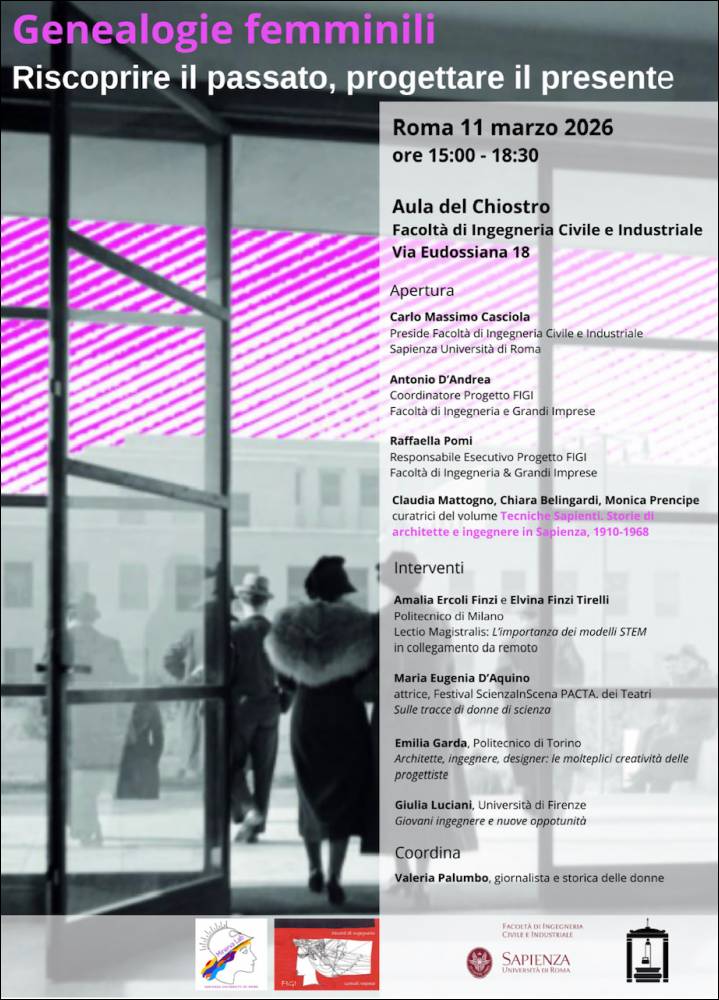 In occasione della presentazione del volume Tecniche Sapienti. Storie di architette e ingegnere in Sapienza, 1910-1968, curato da Claudia Mattogno e Chiara Belingardi con Monica Prencipe per le Edizioni Sapienza (2025), la facoltà di Ingegneria Civile e Industriale organizza un pomeriggio di riflessione attorno ad alcune figure femminili che hanno attraversato il mondo scientifico e quello della progettazione.
