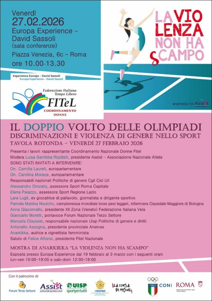“IL DOPPIO VOLTO DELLE OLIMPIADI. Discriminazioni e violenza di genere nello sport” è il focus dell’iniziativa che la Fitel - Federazione Italiana Tempo Libero di Cgil, Cisl e Uil e il suo Coordinamento nazionale donne mettono al centro della discussione in occasione dei giochi olimpici invernali di Milano Cortina.