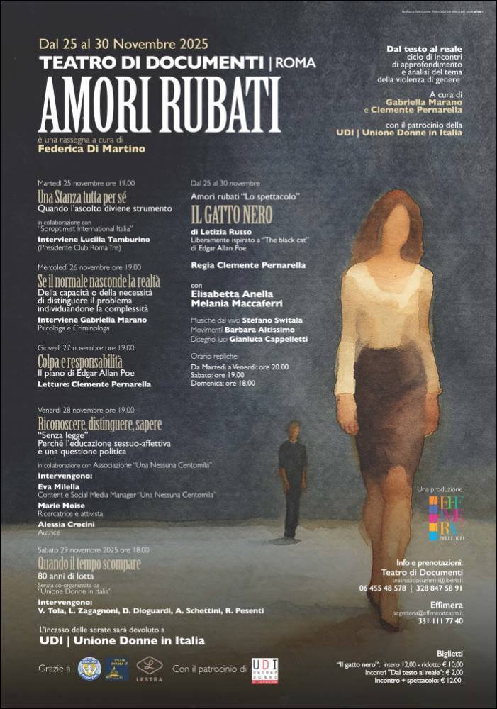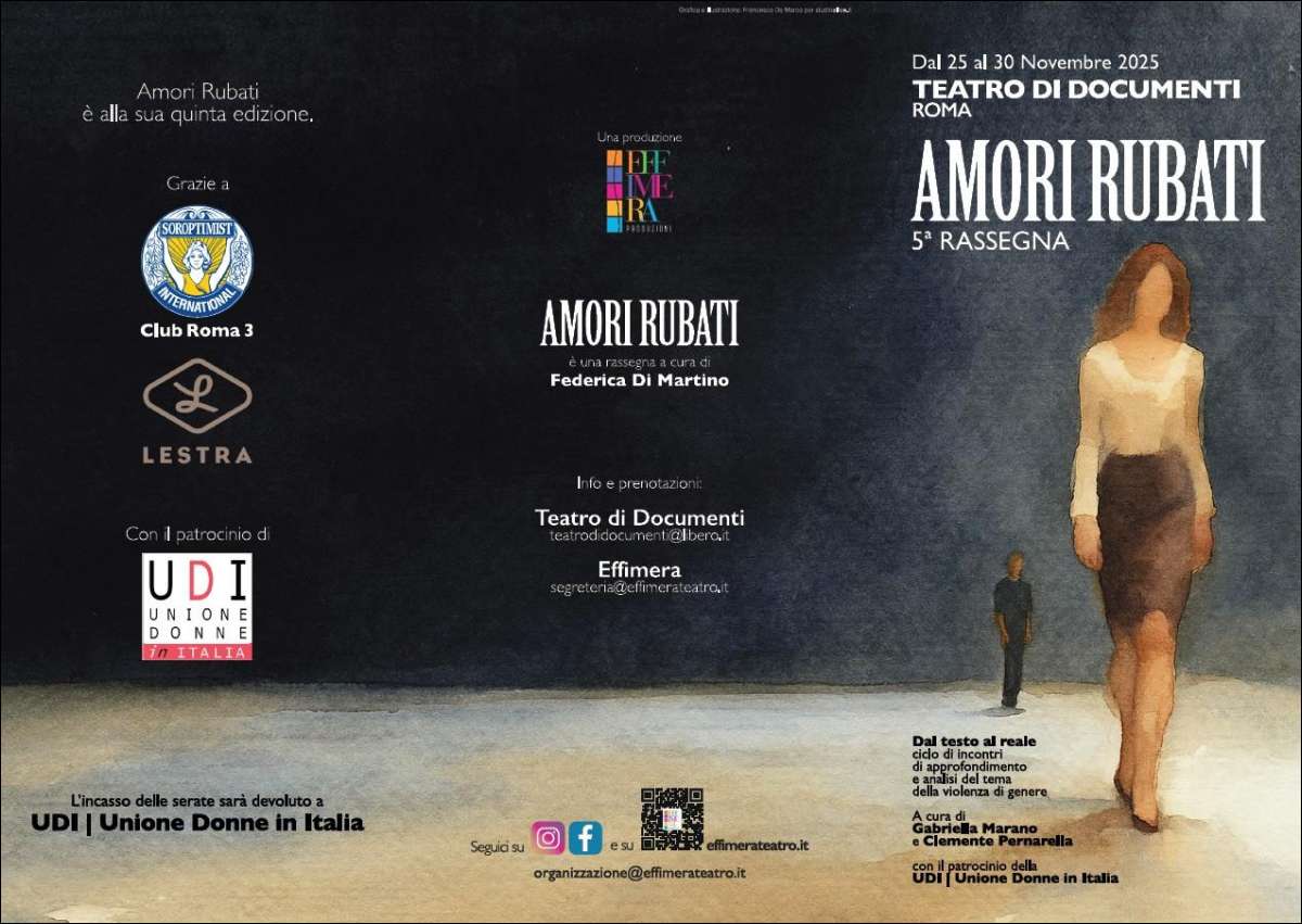 Venerdi, 05/12/2025 - E’ giunta alla quinta edizione la rassegna “Amori rubati”, dedicata alla prevenzione e sensibilizzazione sul tema della violenza di genere. La rassegna, nata dallo spunto in occasione della messa in scena dello spettacolo “Cronaca di un amore rubato”, tratto da “L’amore rubato” di Dacia Maraini, e interpretato da Federica De Martino, nel 2013, prosegue con grande partecipazione di un pubblico vario e partecipe, grazie a una sapiente commistione di teatro e incontri a tema.