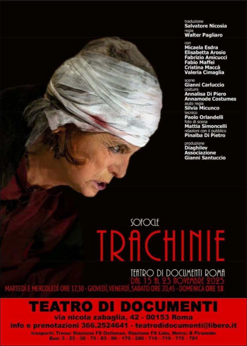 Micaela Esdra sarà in scena dal 15 Novembre al teatro di Documenti di Via Zabaglia 42 a Roma (quartiere Testaccio) Con lo spettacolo “Le Trachinie” di Sofocle, per la regia di Walter Pagliaro.