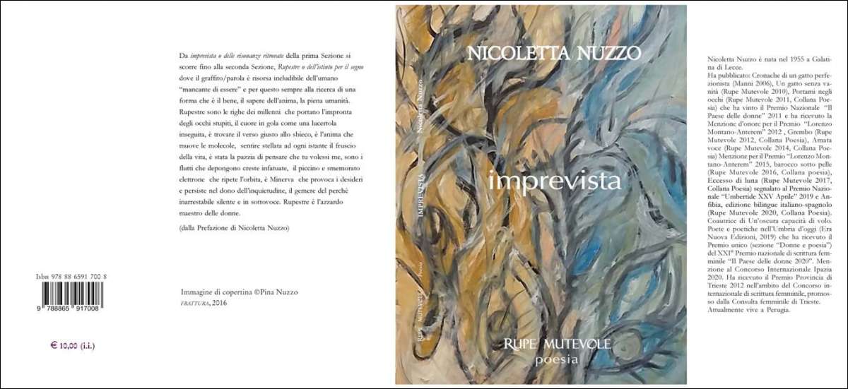 Mercoledi, 29/10/2025 - La raccolta di poesie "imprevista" di Nicoletta Nuzzo, pubblicata da Rupe Mutevole, è un'opera che si addentra con coraggio e lirismo nella ricerca di un'identità femminile autentica, fuori dagli stereotipi e in costante dialogo con il sé, la genealogia e il mondo. L'autrice stessa la definisce come la continuazione di un percorso d'identità, la necessità di una poesia come "luogo di costruzione di un simbolico femminile" che sia conforme alla sua esperienza di donna e non a un "dover essere".