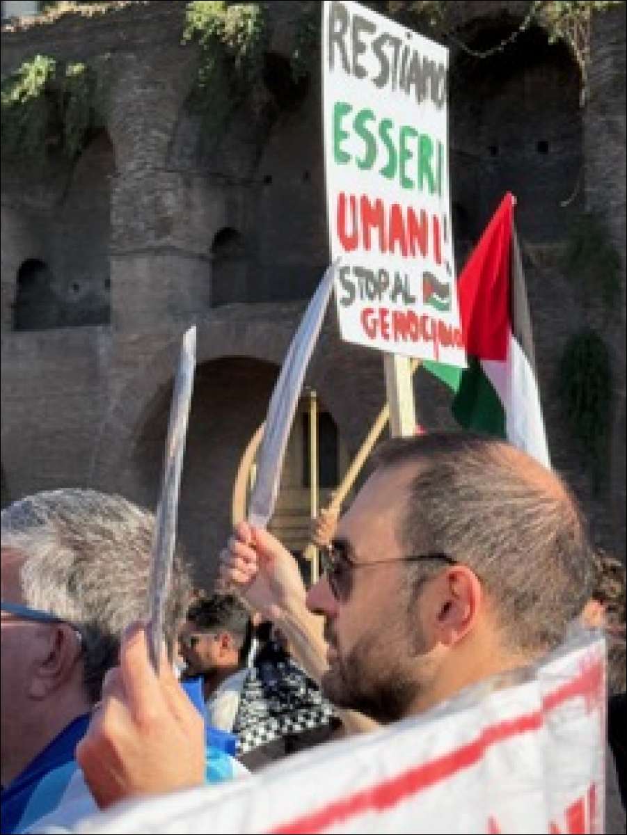 Sabato, 04/10/2025 - Roma, 5 ottobre 2025. Si stimano un milione di partecipanti partiti da Porta San Paolo poco dopo l’orario stabilito. Il corteo arriva a San Giovanni verso le ore 16:00, mentre al Colosseo stazionano ancora una marea di partecipanti, e per almeno un’altra ora non riescono a procedere per il numero straordinario di quel grande fiume umano di giovani, bambini, famiglie e anziani. La manifestazione termina verso le 19:00, con la presenza da altre regioni d’Italia, senza alcun partito di riferimento, nonostante che nel corteo s’intravedano alcuni leader politici. I giovani organizzatori del parco mobile, lanciano slogan e brevi interventi. I primi ad arrivare sono alcuni bambini palestinesi con i loro genitori. Bambini con un piglio dignitoso e serio come per ricordare al mondo che pur essendo piccoli, già conoscono la gravità e grevità del Male. Dal palco mobile tra un intervento e l’altro, i palestinesi scandiscono soprattutto “Free Palestine”, come per ricordare a tutti e a loro stessi la necessità di sopravvivere per la libertà. Uno di loro termina lo slogan con un commovente: “Palestina mia…”. La voce è rotta dall’emozione, un sentimento condiviso da tutti i nostri connazionali, indignati per le piccole vittime innocenti e per un popolo inerme destinato, contro ogni logica umana, a un’epurazione senza precedenti. Come affermato da Francesca Albanese, le prime vittime di Hamas sono stati proprio i palestinesi, molti di loro anche gambizzati. In un intervento dal palco si ringrazia il popolo italiano per la presenza massiccia e per il grande cuore che ha dimostrato di avere. Questa manifestazione, pur portando nell’anima la rabbia di un ingiusto massacro, offre genuinamente l’immagine della libertà dei popoli, tutti uniti per la Pace. Coincidente con l’arrivo del corteo due sposi italiani ritardatari entrano nella Basilica quasi correndo! La sposa tiene in mano il suo strascico per non cadere. Un bel presagio nel giorno di San Francesco, dove i giovani del corteo s’arrampicano sulla bellissima statua del Santo sventolando le loro bandiere. Il messaggio lasciato dal nostro amato Santo è la fraternità e il rispetto per la creazione, promuovendo un ritorno alla semplicità, all’amore per ogni creatura attraverso un servizio altruistico. Proprio come “l’accoglienza” riservata alla Global Sumul Flotilla…Trapela ancora l’indignazione di tutti contro l’arrembaggio alla Flotilla, con “gavettoni” al pari di una autentica pirateria in acque internazionali, dove l’esercito israeliano scorta i volontari della Flotilla, con armi puntate nelle loro carceri, sequestrando anche le medicine, senza mai dare cibo né acqua per tutta la notte. L’eurodeputata Benedetta Scuderi, tra l’altro, in un’intervista TV, svela la menzogna riferita anche da alcuni media che la Flotilla fosse sprovvista di aiuti umanitari, ma un filmato girato nei porti dove sono state caricate le imbarcazioni prima della loro partenza smentisce questa ennesima falsità di regime. Intanto sembra siano partite molte altre imbarcazioni alla volta di Gaza, con la medesima speranza: aprire finalmente un varco umanitario, secondo il diritto internazionale. L’interessamento della Farnesina facilita il rientro degli eurodeputati italiani, mentre gli altri restano in attesa di un processo o di un rimpatrio. Il popolo italiano insorge con immediate e precedenti manifestazioni nazionali. Gli unici a non capire il senso dell’indignazione dei nostri connazionali e degli attivisti sulla Flotilla, circa 500 rappresentanti di 45 popoli diversi, sono il governo italiano e quello israeliano che danno la medesima versione: “la Flotilla pagata da Hamas voleva solo creare problemi al governo”! C’è da dire che in ogni secolo regni sovrano un disturbo peculiare: al tempo di Sigmund Freud andava di moda l’isteria, ora si predilige la paranoia, sicuramente più consona al potere, che necessita costantemente di un nemico da additare per agire indisturbato. Il nemico è la formula vincente per ogni genere di autoritarismo, che attecchisce con una sorta di taglia e incolla sul pensiero ridotto di tutti coloro che necessitano ancora del “capo”, di un padre padrone al quale consegnare una delega, tanto per semplificare i loro minimi concetti, come pensare prima a sé stessi fregandosene degli altri. La delega sostituisce così ogni senso di responsabilità e di riflessione. Non a caso Theodore Adorno nel 1950 creava il test atto a misurare la personalità autoritaria come stereotipo del pensiero politico, ora probabilmente sconosciuto agli studenti universitari.