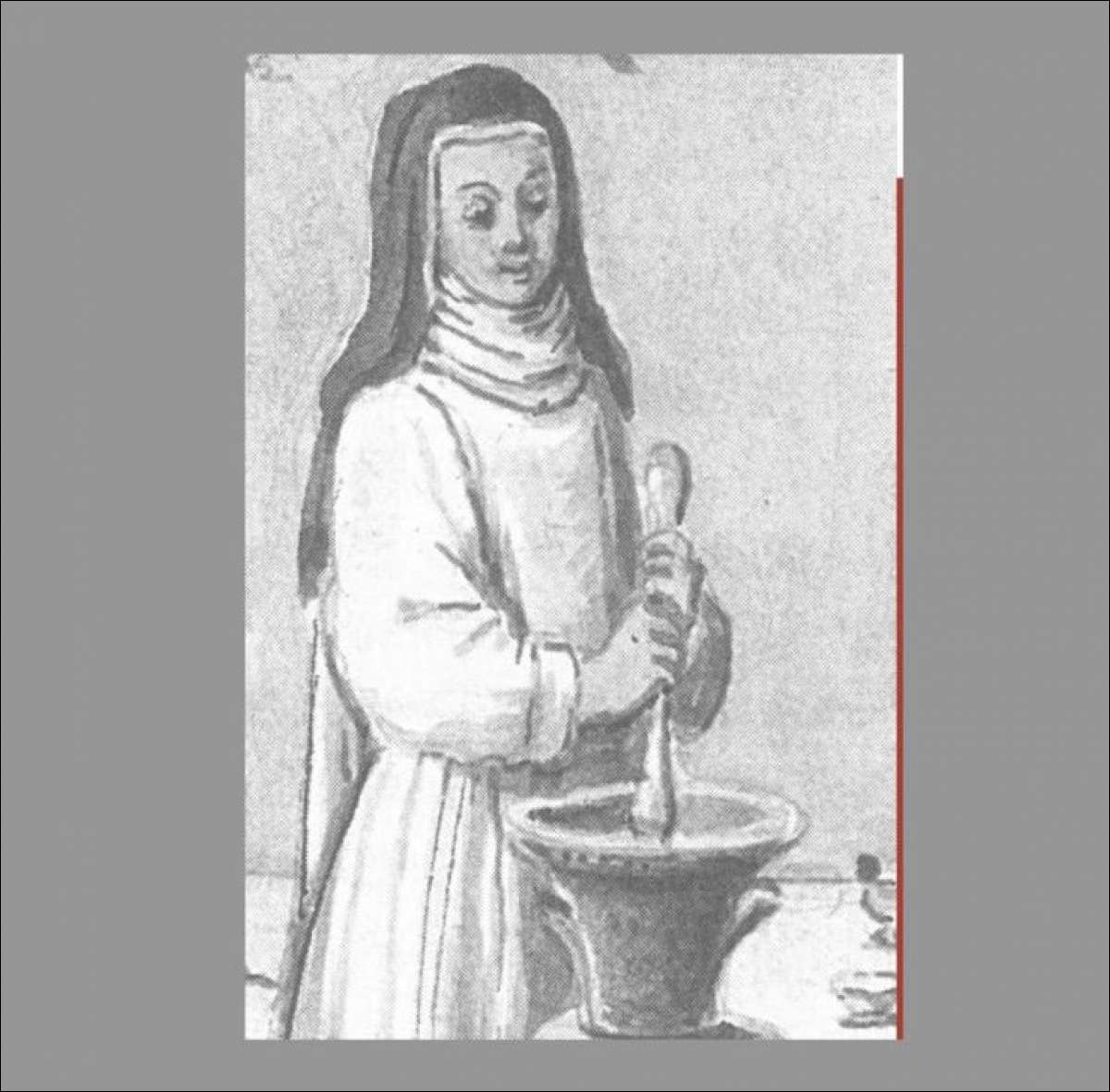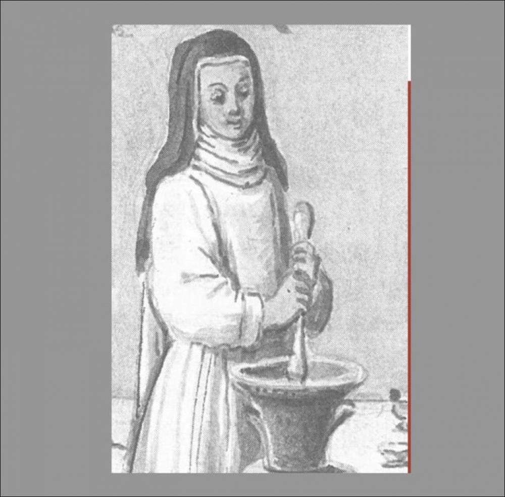 Molte comunità religiose femminili gestivano “spezierie” interne — officine di produzione di rimedi erboristici, infusi, distillati, unguenti e preparazioni medicinali. Qui, in un contesto storicamente ostile all’accesso delle donne alla scienza formale, le monache svilupparono saperi complessi,studiavano, registravano, sperimentavano di botanica, farmacologia, medicina pratica, chimica degli estratti. Strumenti di vetro soffiato, alambicchi, bilance di precisione, mortai in pietra o bronzo popolavano questi ambienti. Molte spezierie monastiche femminili erano note per la qualità dei loro prodotti, usati in primis per il benessere delle consorelle ma non meno apprezzati e richiesti al di fuori del convento.