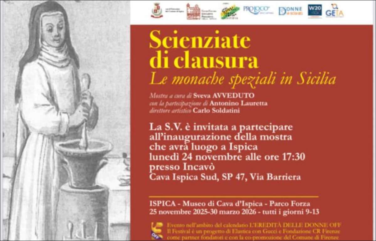 E' visitabile fino al 30 marzo 2026 la mostra 'Scienziate di clausura, Le monache speziali tra erbe, saperi e cura' allestita presso il Museo di Ispica (Rg)