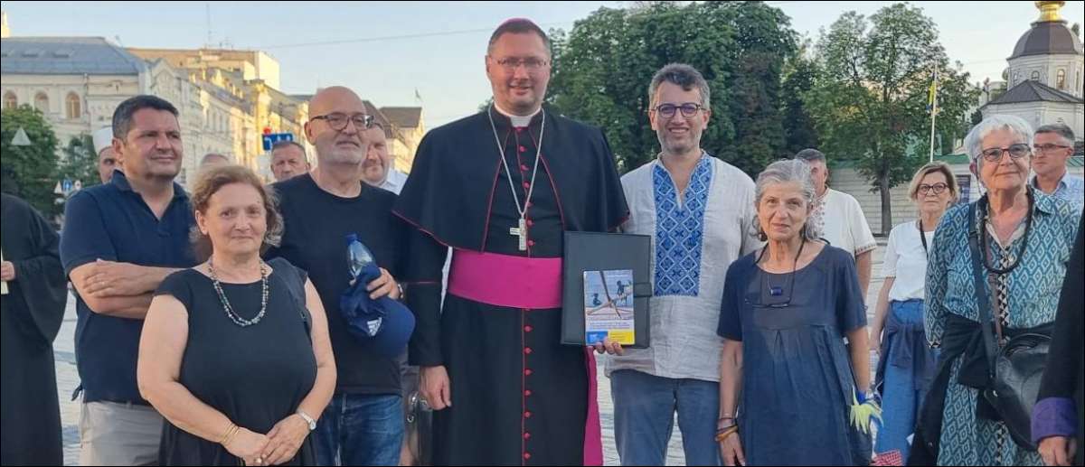 Dopo aver attraversato il centro di Kiev, sotto un sole cocente ed un cielo azzurrissimo, raggiungiamo Piazza Sofia per la grande preghiera interreligiosa per la pace. Svettano le cupole delle chiese: ci affacciamo sui cortili interni, poi rientriamo subito nella grande piazza ove piano piano arrivano gli esponenti di tutte le religioni. Arriva il Nunzio Apostolico che partecipa anche ai nostri gruppi di lavoro sulla pace e cui consegno il volume’ Le vie della pace’ . Alcune ragazze sul palco cantano seguendo musica ucraina che si alterna agli allarmi aerei. Scrutiamo il cielo blu, ma nessuno si muove. La nostra preghiera per la pace vorrebbe sfidare i missili. Non cerchiamo un rifugio, ma ci prendiamo per mano, in cerchio mentre sul palco si alternano i vari interventi del Mean che chiedono a gran voce la pace, Angelo, il Nunzio Apostolico, Marcello Bedeschi dell’Anci, Don Giacomo Panizza, Marina Sorina. Marianella vorrebbe che ci sedessimo in modo che si potesse leggere la scritta: Putin go Home. Massimo e Giovanna reggono il cartello. Ci proviamo, noi , non più giovanissime, con una qualche difficoltà. Ma il momento più alto è quando Giovanna legge in italiano, latino, ebraico il Salmo 85. “Ascolterò cosa dice Dio, il Signore. Egli annuncia la pace per il suo popolo, per i suoi fedeli… Amore e verità si incontreranno, giustizia e pace si baceranno“. La verità germoglierà dalla terra e la giustizia si affaccerà dal cielo. Le parole antiche, nella lingua dei padri, echeggiano nel cielo di Kiev come musica alle nostre orecchie. E le giovani donne ucraine, nei loro abiti ricamati, ricominciano a cantare. Sono partita per l ‘Ucraina con lo spirito del libro La valle dell’Eden. Non abbiamo idea di quello che siamo e saremo: gli eventi si delineano, nella loro spontaneità, in modo rocambolesco. Ripensando alla piazza di Cracovia dove più di diecimila ebrei sono stati deportati e alla piazza di Kiev che invoca la pace, mi ricordo le parole di Steinbeck. A proposito della Genesi c’è una traduzione di un termine ebraico che richiama alla propria responsabilità. “ Tu puoi” . Nelle mani dell’umanità vi è la responsabilità di potere cambiare le cose. Di fronte alla guerra, sotto il meraviglioso cielo dell’Ucraina il “ tu puoi” riveste un significato particolare. Perché tanti morti innocenti? Per la sete di potere che alimenta l’industria bellica, e le mire espansionistiche e imperialistiche vecchie di secoli, ma riproposte dalla Russia di Putin. Il nostro obiettivo è spingere quanto più possibile l’umanità verso la Valle dell’Eden e non verso l’inferno della guerra. Le donne amano la pace, vogliono la pace accompagnata dalla giustizia. Ma varranno a qualcosa i nostri sforzi???