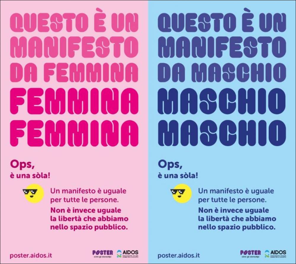 Giovedi, 30/04/2026 - 86 affissioni, 10 stazioni metro, mercati e università: dal 4 maggio Roma si colora di rosa e celeste per la campagna di AIDOS contro gli stereotipi di genere. Un intervento nello spazio pubblico per avviare un processo di decostruzione.
