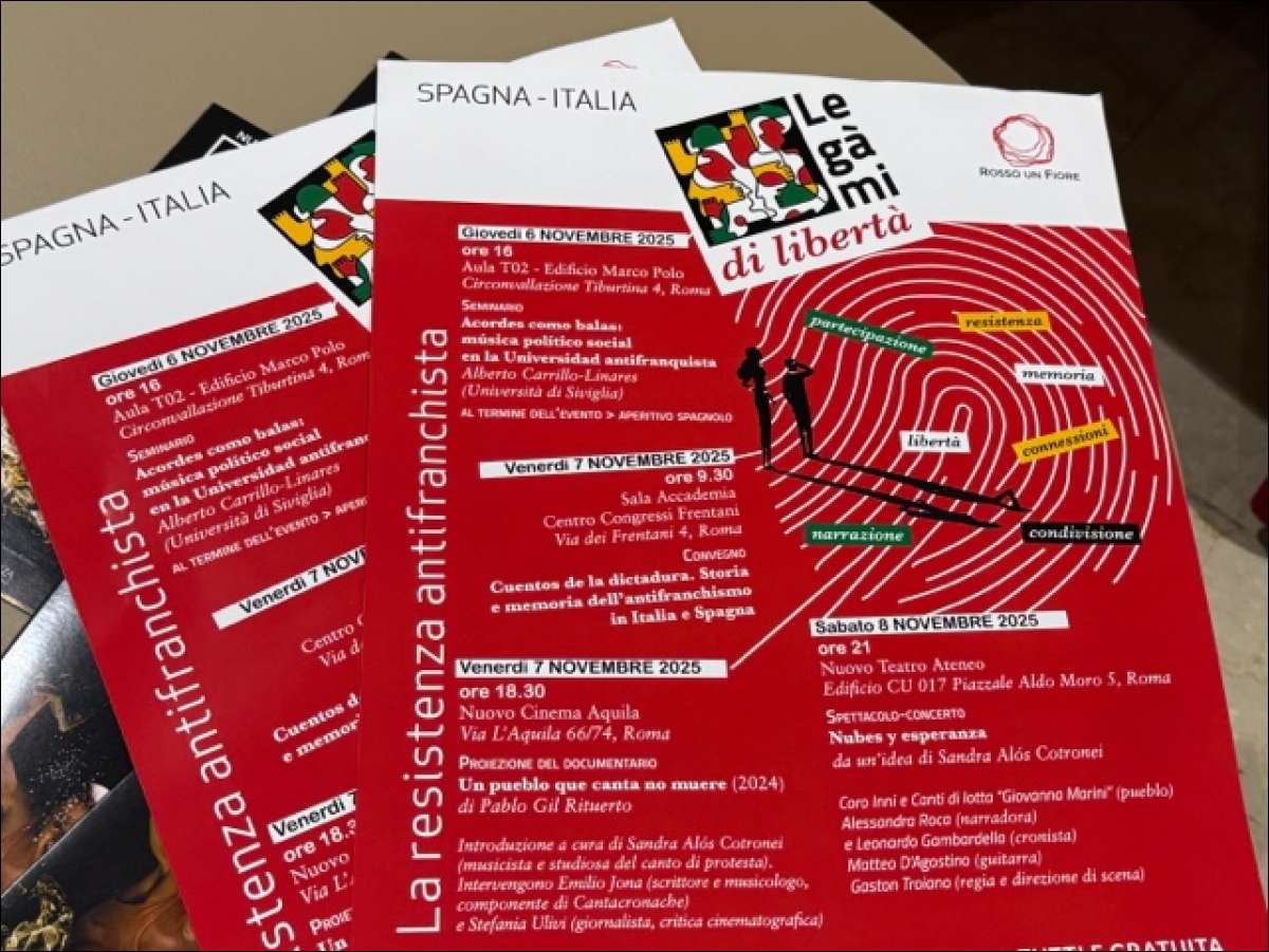 Fra gli altri eventi del progetto, il seminario dal titolo “Acordes como balas: música político social en la Universidad antifranquista” tenuto da Alberto Carrillo-Linares, storico dell’Università di Siviglia, il convegno dal titolo “Cuentos de la dictadura. Storia e memoria dell’antifranchismo in Italia e Spagna” svoltosi presso il Centro Congressi Frentani a Roma e la proiezione del documentario "Un pueblo que canta no muere" (2024), di Pablo Gil Rituerto, proiettato al Nuovo Cinema Aquila di Roma.
