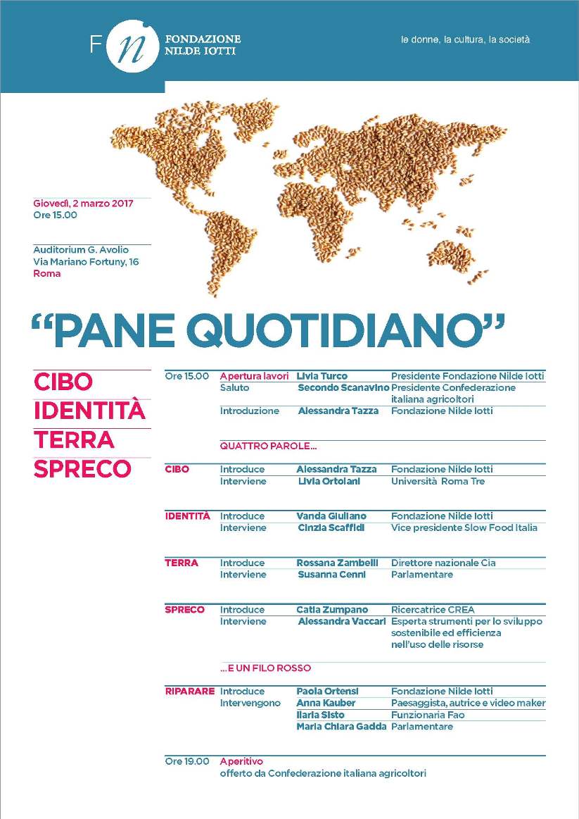 Il 2 marzo convegno della Fondazione Nilde Iotti “Pane quotidiano” sui temi: cibo, identità, terra, spreco
