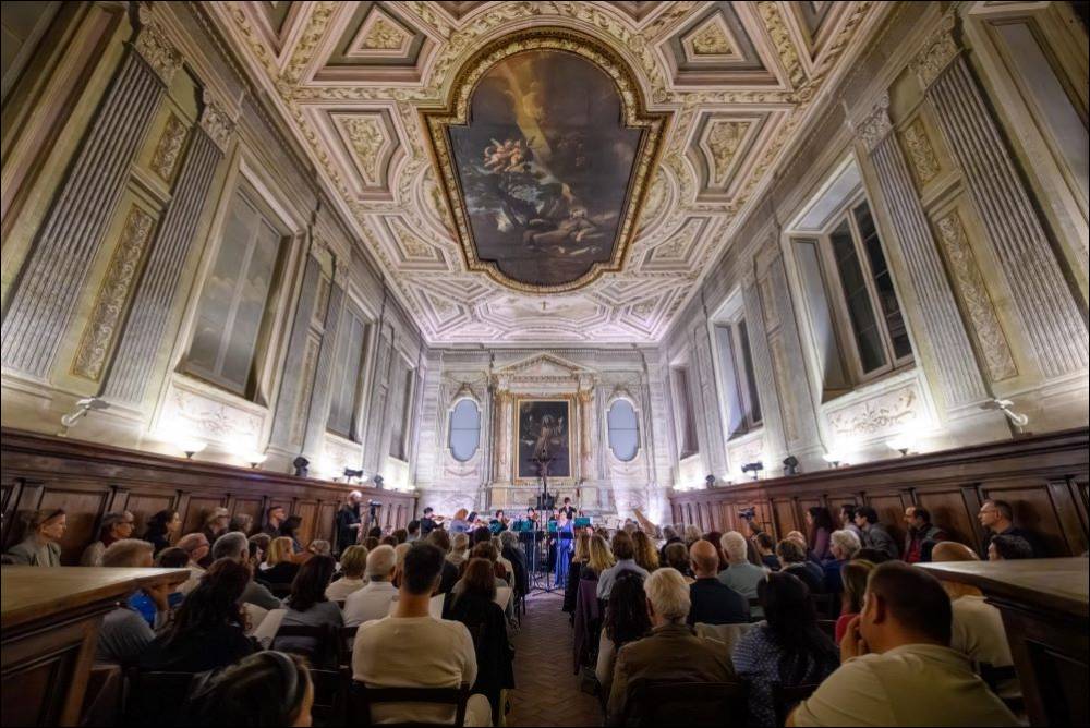Mercoledi, 22/10/2025 - Il 18 ottobre 2025 l’Oratorio della Chiesa delle Sacre Stimmate di San Francesco, luogo sconosciuto ai più, sebbene a due passi dal centralissimo Largo Argentina a Roma, e piccolo gioiello da riscoprire, ha degnamente ospitato un appuntamento musicale prezioso. Il concerto celebrava due mecenati d’eccezione: la regina polacca Maria Kazimiera Sobieska, che passò a Roma una quindicina di anni circa, a partire dal 1699, e il Cardinale Ottoboni. Maria Kazimiera, vedova di re Giovanni III di Polonia, icona della cristianità poiché nel 1683 aveva fermato l’avanzata dei Turchi a Vienna, fu una protagonista della vita culturale della città. L’incontro tra questa donna brillante e colta e un raffinato intellettuale come il cardinale Ottoboni fu particolarmente felice. I due presentarono nei loro rispettivi teatri privati una serie di drammi per musica, in un’amichevole e fertile rivalità che li spronò ad eccellere. Il cardinale era mecenate di Alessandro Scarlatti, mentre la Regina Sobieska ne incoraggiava e promuoveva il giovane figlio Domenico.