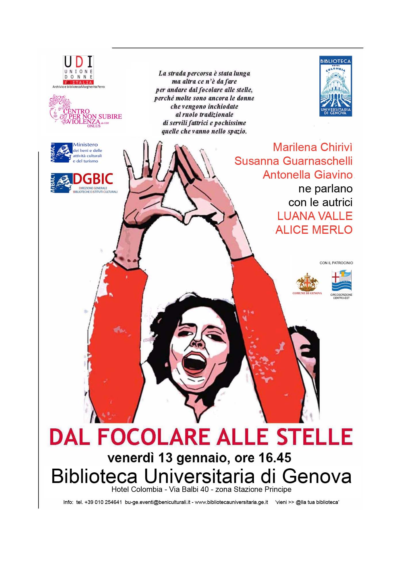 Lunedi, 16/01/2017 - L'UDI Archivio e Biblioteca - Centro per non subire violenza (già UDI) hanno organizzato la presentazione del libro 'Dal focolare alle stelle' di Luana Valle e Alice Merlo. Riceviamo e volentieri pubblichiamo la cronaca dell'incontro..jpg)