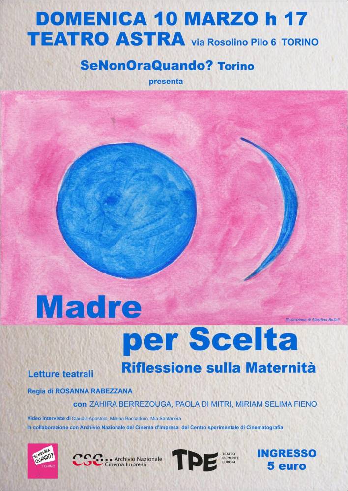 Domenica, 24/02/2019 - Quanto è autenticamente libera la scelta di avere o di non avere figli per una donna oggi? Cosa accade nella vita delle donne quando inevitabilmente, prima o poi, in un modo o nell’altro, si arriva a confrontarsi con questo snodo fondamentale? Qual è lo stato di salute dell’autodeterminazione delle donne in tema di maternità in Italia? Da queste domande è scaturito il nostro percorso di ricerca e di riflessione che ha portato a questo momento pubblico grazie alla collaborazione di Rosanna Rabezzana.