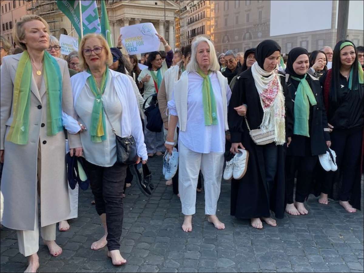 Domenica, 29/03/2026 - Un cammino simbolico a piedi nudi nel centro della Capitale per lanciare un appello comune: madri israeliane e madri palestinesi chiedono la fine immediata della violenza e la presenza delle donne nei negoziati di pace perchè “nessuna decisione sul futuro dei nostri figli dovrebbe essere presa senza di noi” e anche nel rispetto della Risoluzione 1325 (nota come ’Agenda Donne, Pace e Sicurezza) approvata 25 anni fa dal Consiglio di Sicurezza dell’ONU.