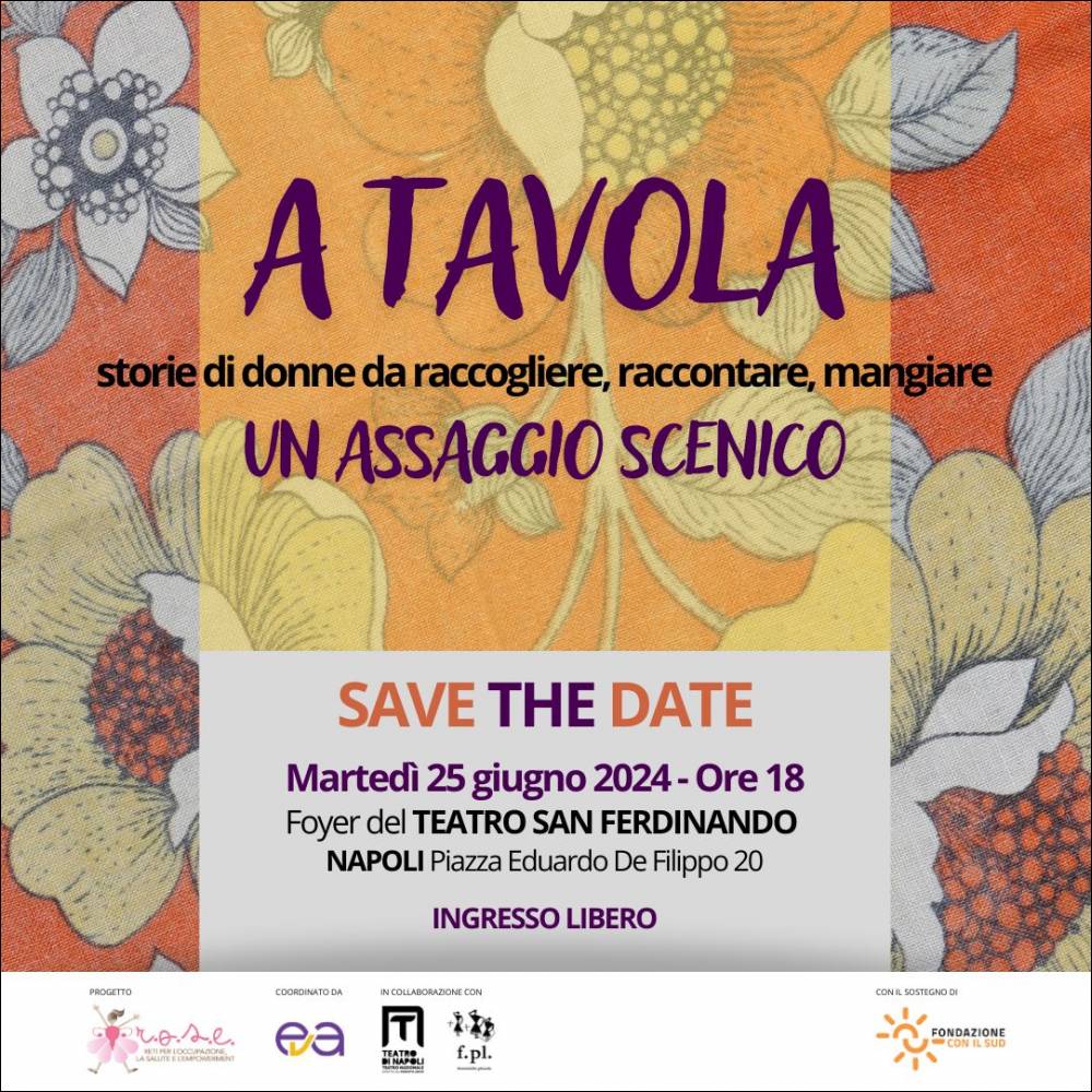 Martedì 25 giugno alle 18, nel foyer del Teatro San Ferdinando di Napoli, A TAVOLA. Storie di donne da raccogliere, raccontare, mangiare invita il pubblico a un ASSAGGIO SCENICO di cosa è capace di generare un laboratorio teatrale quando a mettersi in gioco, prendere parola, creare l’azione è un gruppo didonne che si stanno lasciando alle spalle storie impegnative, contrassegnate a volte da violenza e abusi.