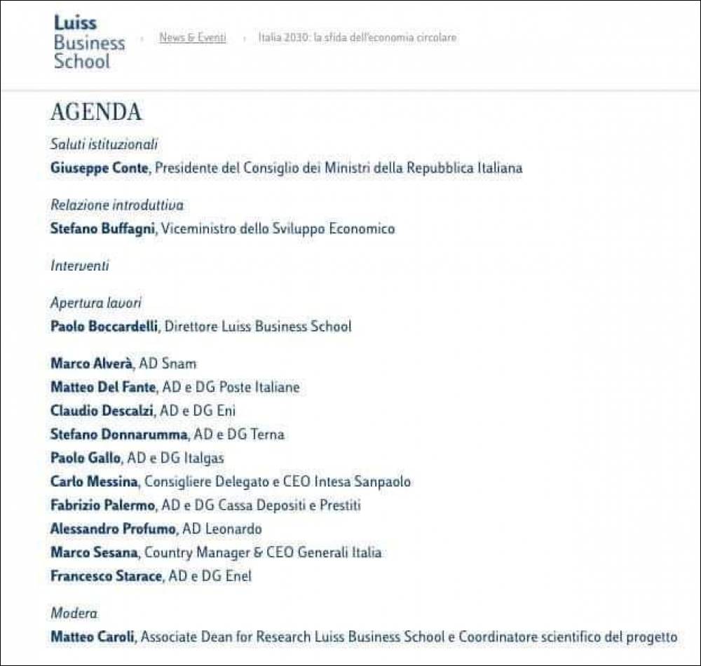 Ho letto con attenzione la vostra lettera e vi confermo che la locandina che avete visto è legata solo all’evento conclusivo di “Italia 2030”, un progetto che è nato oltre un anno fa e che ha riunito le più prestigiose Università italiane nonché aziende di Stato e private.