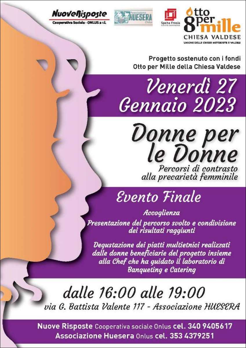 Il progetto “Donne per le donne. Percorsi di contrasto alla precarietà femminile” della coop Nuove Risposte e dell'associazione Huesera, sostenuto con i fondi dell'8xMille della Chiesa Valdese