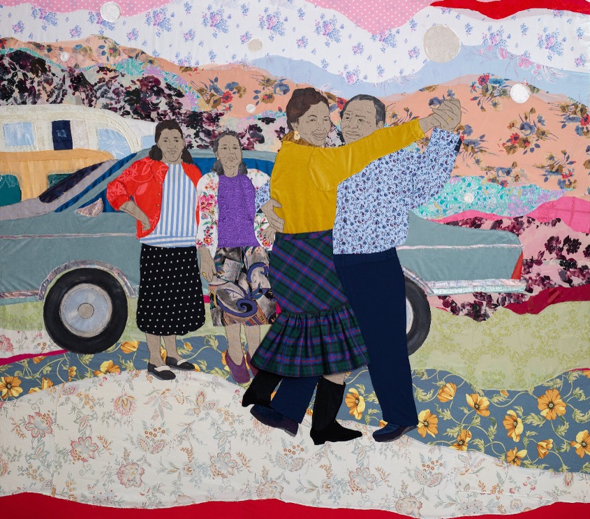 Visivamente traboccanti ed emotivamente coinvolgenti, le sue opere riflettono l’estetica cromatica e compositiva popolare romaní. Dall’accostamento di motivi eterogenei, colori sgargianti e frammenti di stoffe diverse emergono profili di individui – anziani, adulti e bambini –, caravan, caroselli, animali, biciclette, cortili, scale, sedie, campi, cieli: la visione tangibile di una realtà pulsante, caleidoscopica e interconnessa, in cui i confini tra dimensione privata e rete sociale, tra quotidiano e straordinario, tra arte e artigianato, si dissolvono.