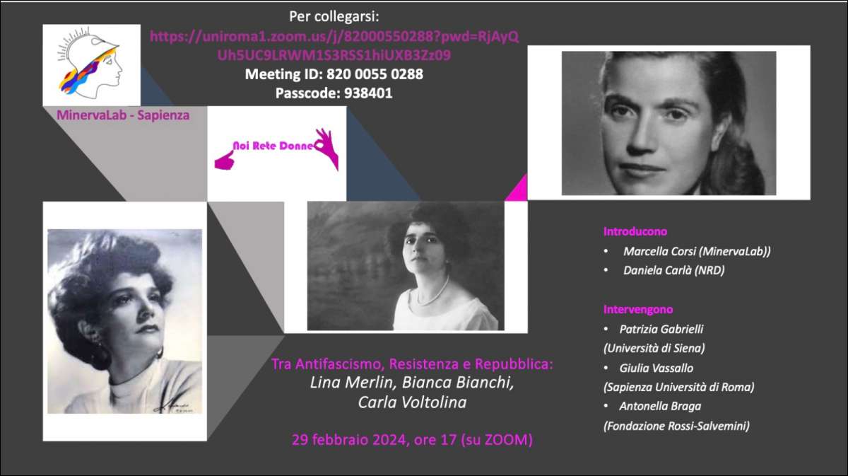 Mercoledi, 07/02/2024 - Tra Antifascismo, Resistenza e Repubblica: Lina Merlin, Bianca Bianchi, Carla Voltolina