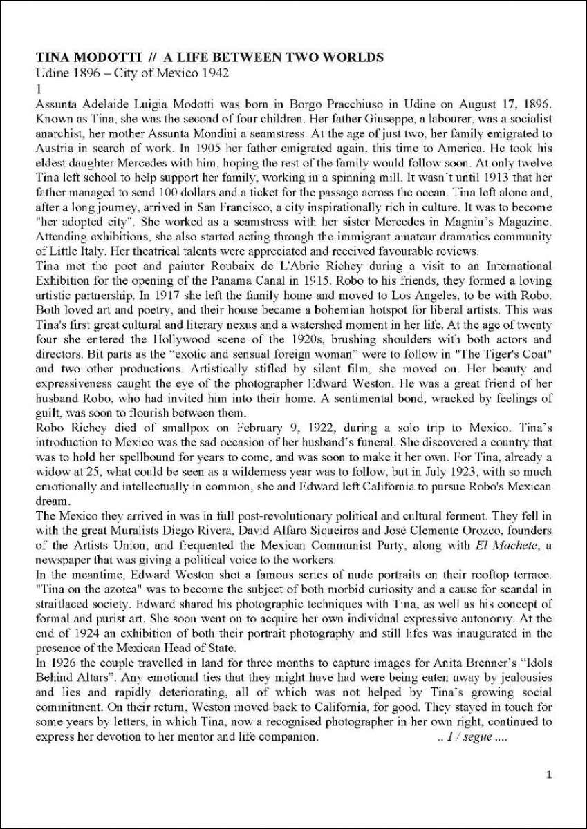 Tina Modotti. Donna, Fotografa, Militante / UNA VITA FRA DUE MONDI